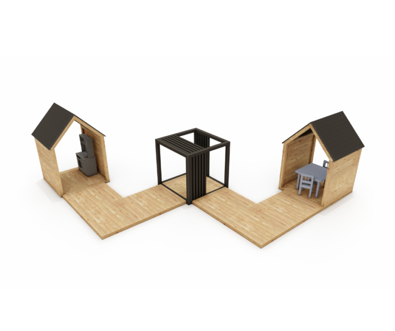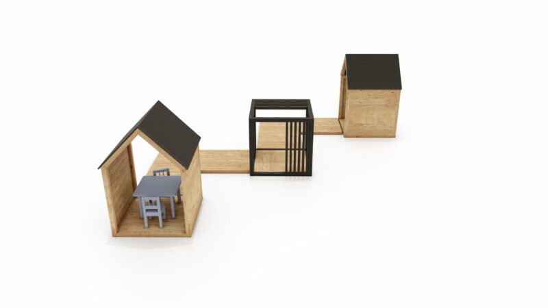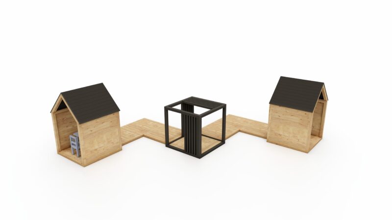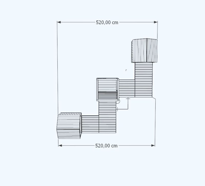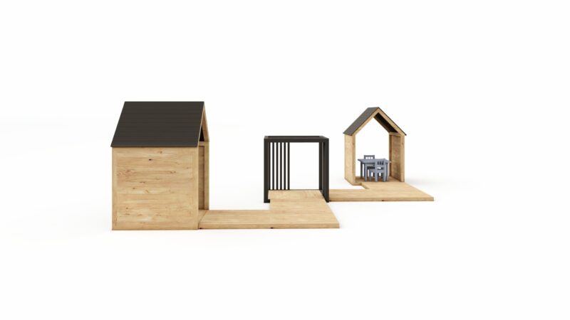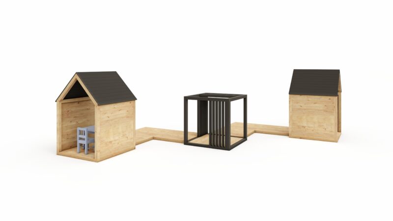 Dimensions: set 120 x 120 cm, beams: 7×7 cm, 4×6 cm, board thickness: 2.7 cm