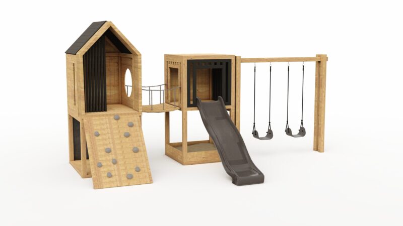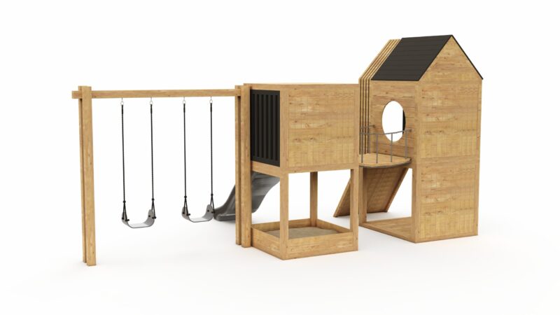 Looking for a solution that will fit even in a small garden? This modular FLY MINI set combines a playground and a playhouse, creating the perfect space for your child to play and relax.