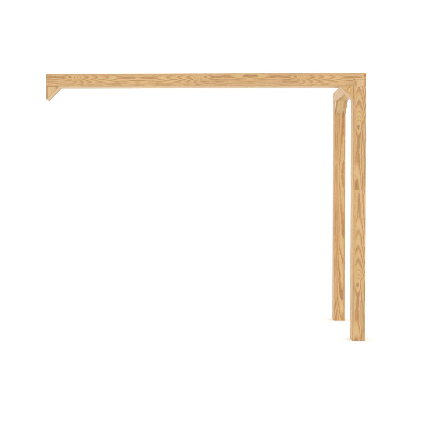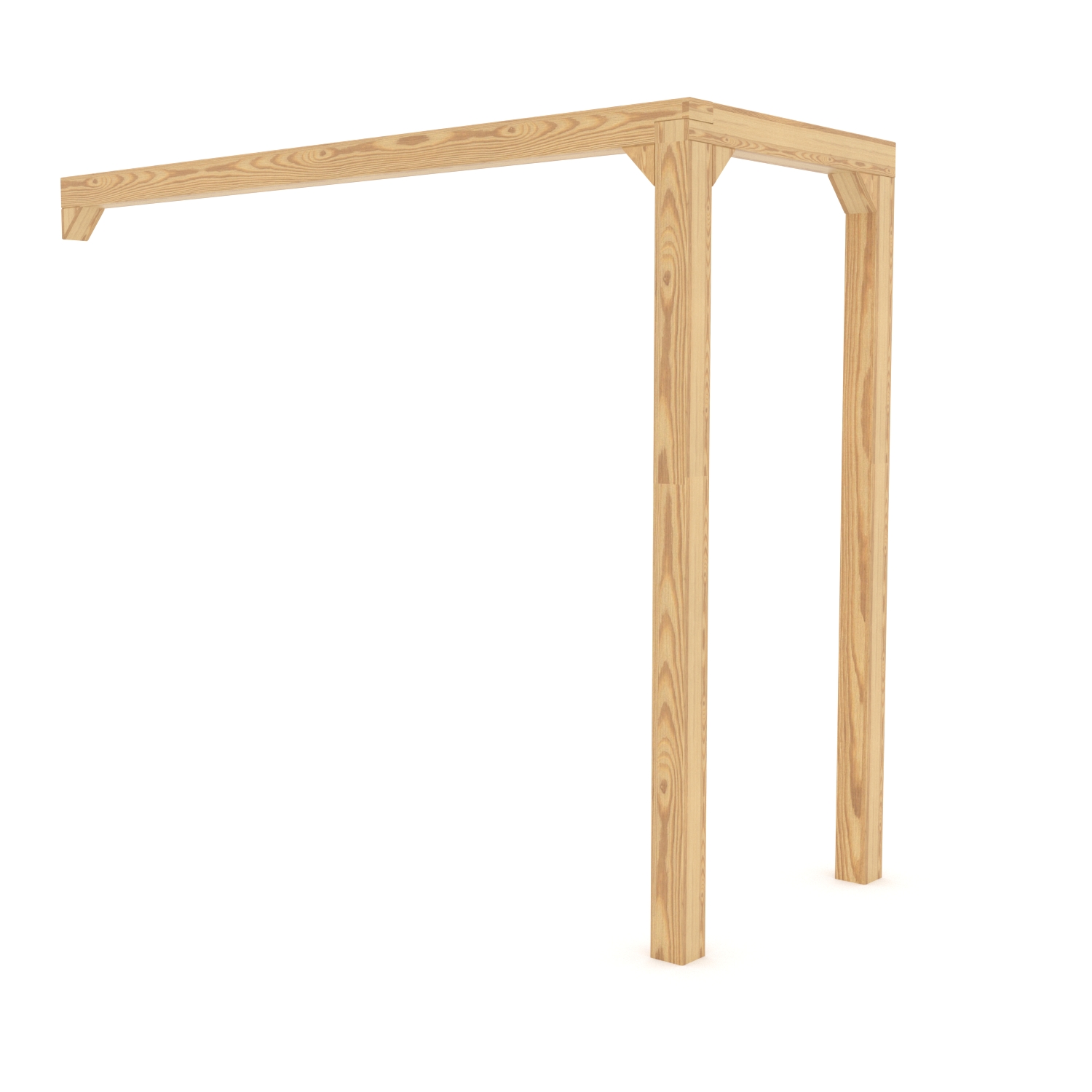 Dimensions: length 2.5m, beam thickness 10x10cm, leg height approx. 2 m, leg thickness 10×10, leg spacing approx. 1m.
