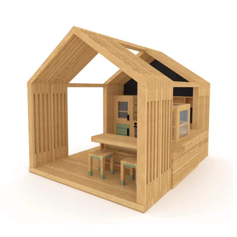 Domek XXL „Kawiarnia” od MODULAKI to przestrzeń, która łączy zabawę, naukę i kreatywność. Drewniany domek z realistyczną kuchnią i stolikami tworzy idealne miejsce do wspólnego gotowania, rozmów i zabawy w małych baristów.