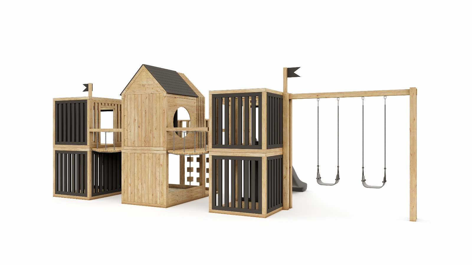 - konstrukcja drewniana (domek na platformie)