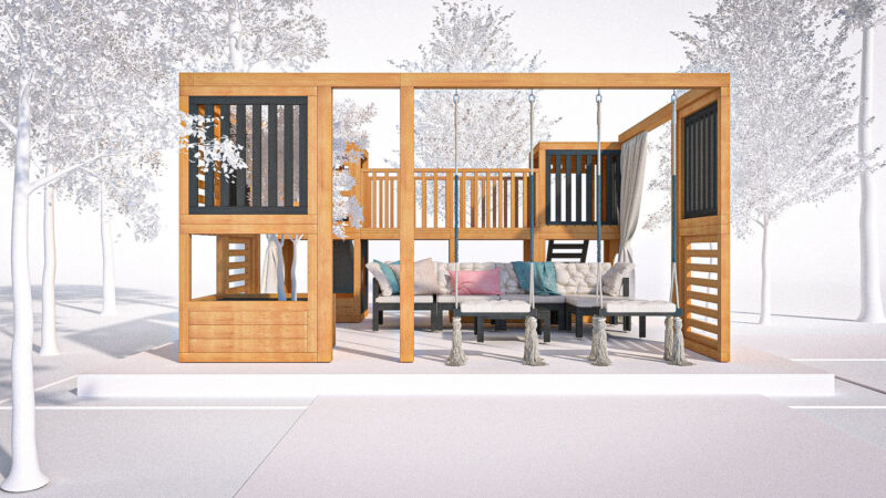 W skład zestawu nie wchodzą: huśtawki, zasłonki, meble, ślizg