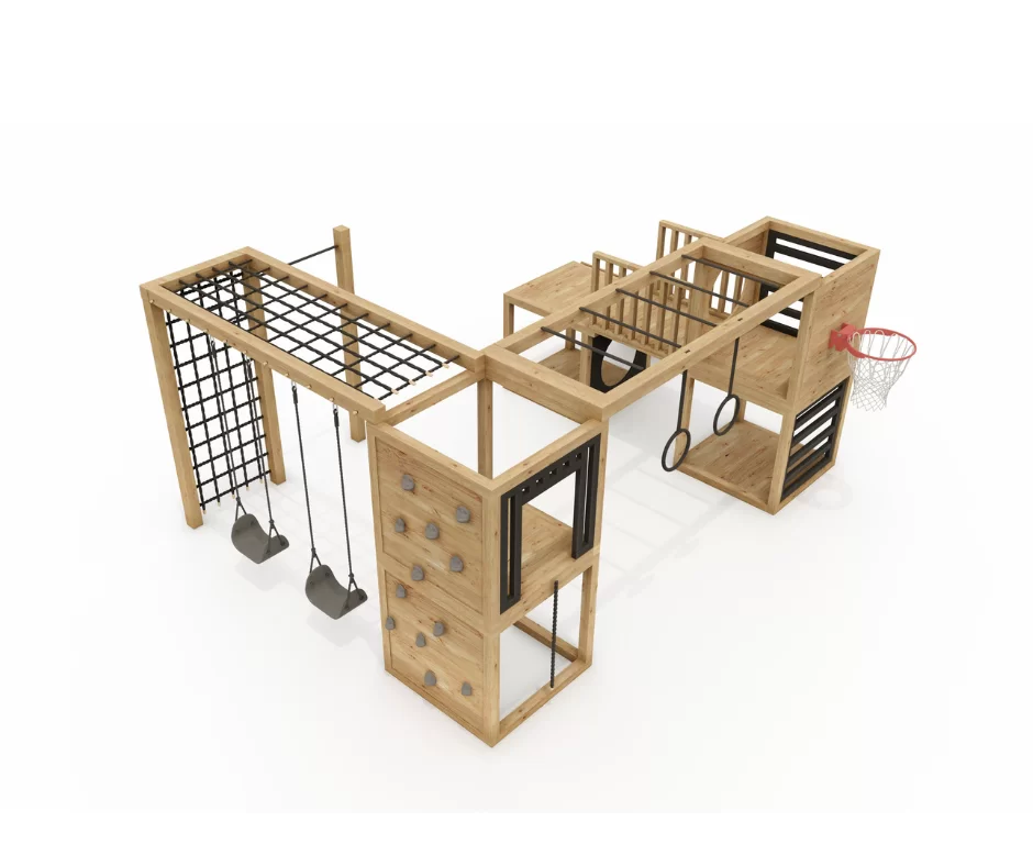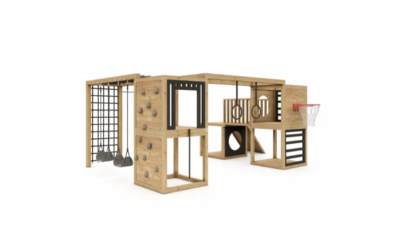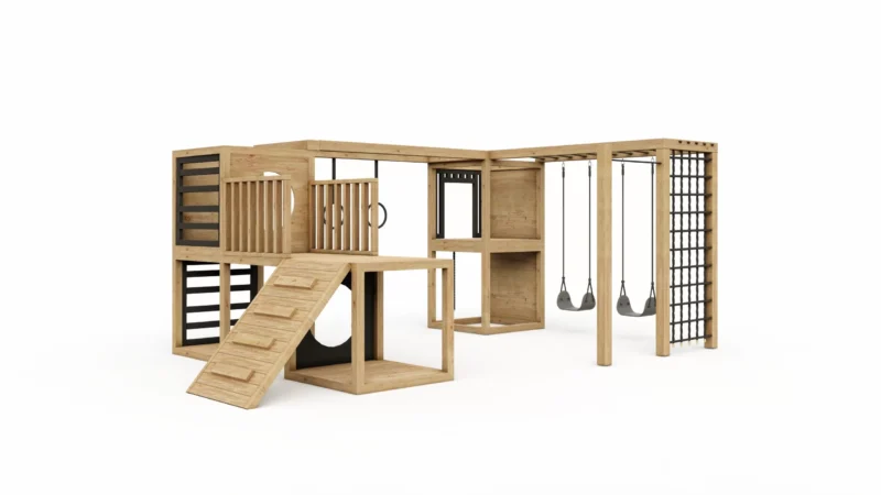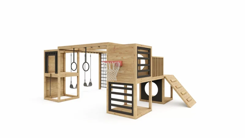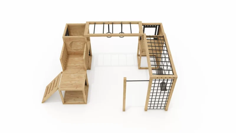 W skład zestawu wchodzą: cała konstrukcja drewniana wraz z akcesoriami.