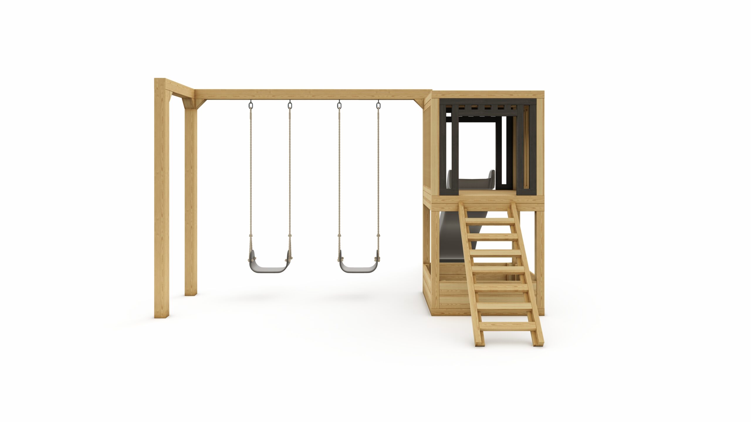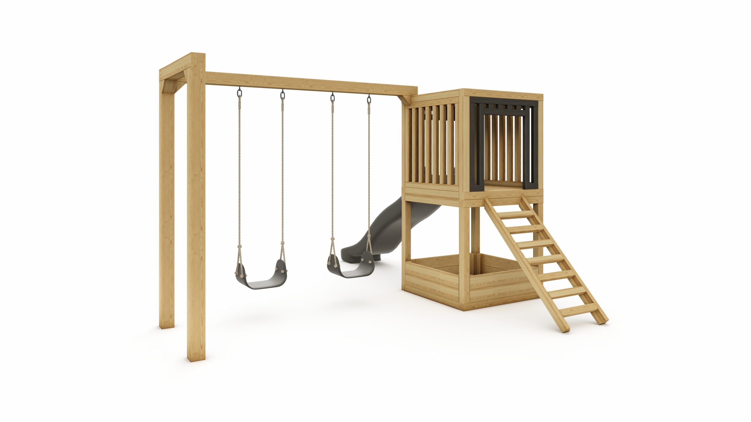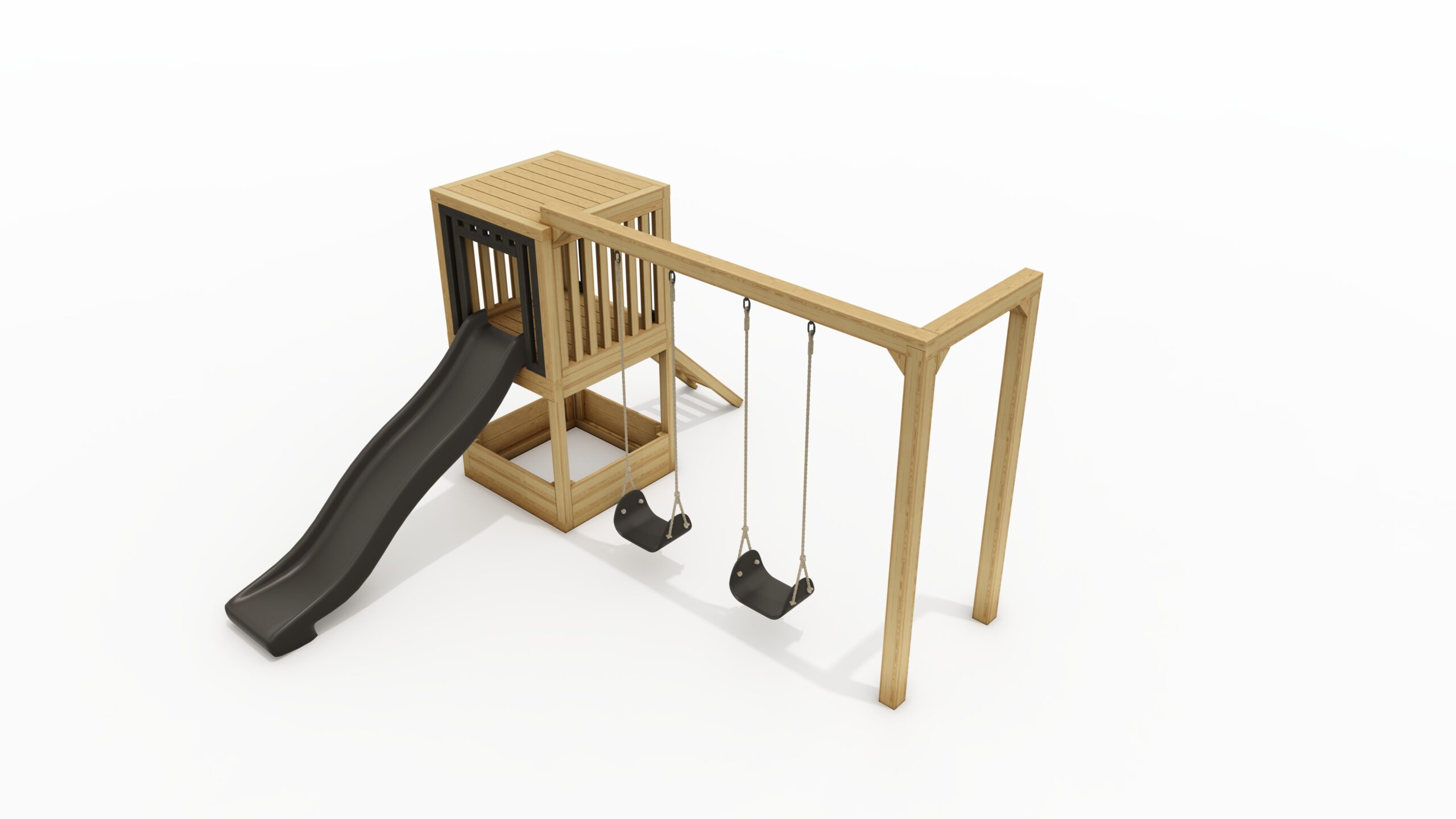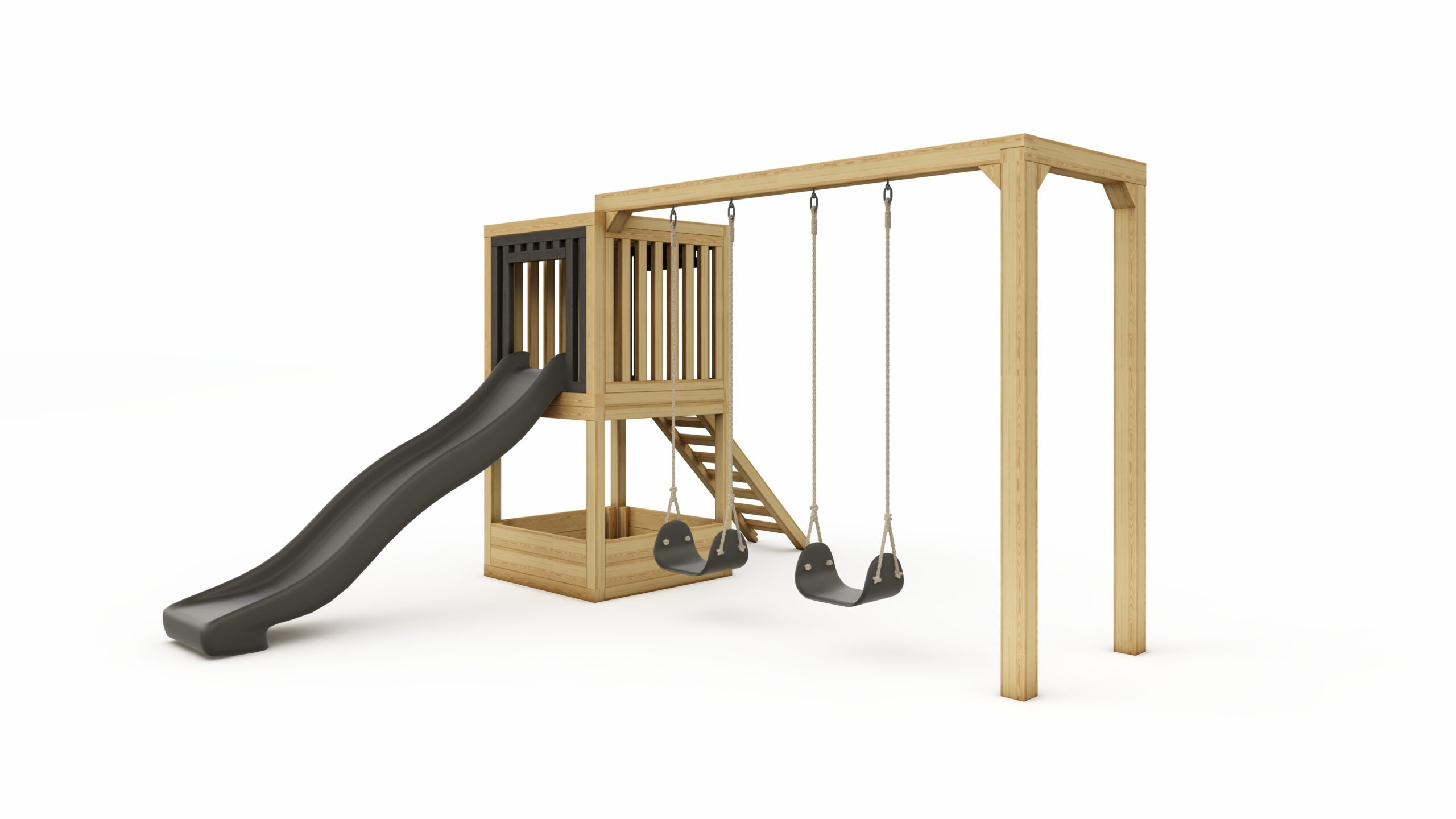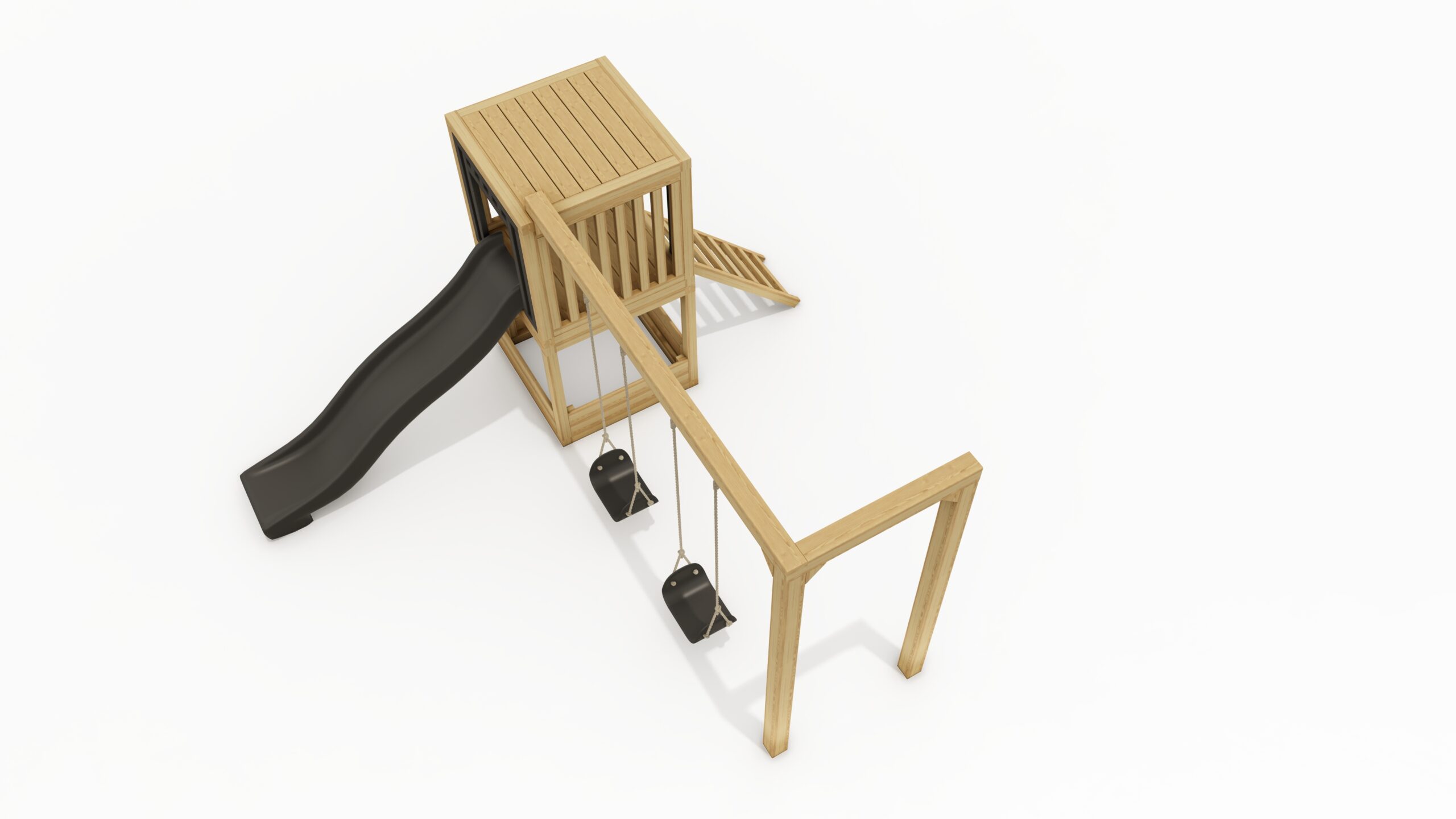 Wymiary: zestawu (bez drabinki): ok 3.5x1m, kantówki: 7×7 cm, 10x10cm, grubość deski: 2,7 cm